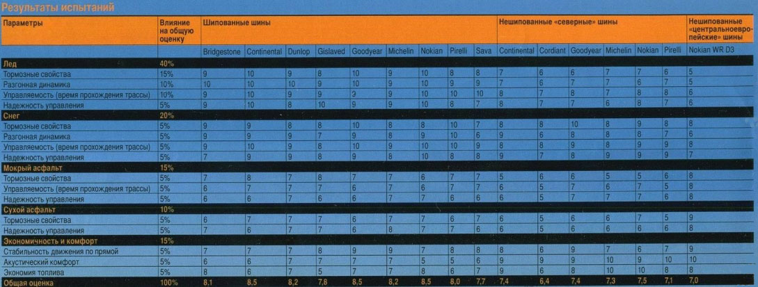 Итак, тест зимней резины R16 мы провели и готовы представить результаты, но Вам наверняка интересно, как именно они подсчитывались. Они переводились в баллы (10-балльная шкала) и суммировались с учётом их степени весомости. Во главу угла мы поставили сцепные параметры на льду – 40%. Далее следует снег (20%), влажный асфальт (15%), сухое асфальтовое покрытие (10%), а ещё 15% мы оставили для экономичности и комфорта.